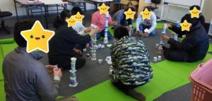 先日、ヨガマットを敷いて輪になり交互にボールを