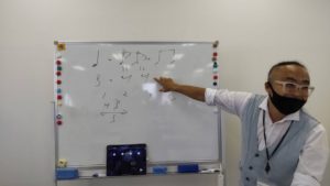 8分休符を絡めたフレーズをご理解頂く事によって、より多彩なフレーズへの可能性も広がって参ります。本日は、効率の良い発音に繋げる為の 腕の動作のサイクルについても考慮頂きながら発音頂きました。