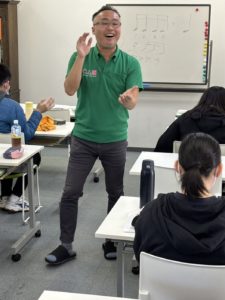 本日は、ウォーミングアップやハンドクラップの鳴らし方等ご説明をさせて頂き、毎回皆さんが楽しみにしているおススメ曲を当てるテンポ当てクイズ等も行い、こちらを絡めたフレーズの発音にチャレンジ頂きました!