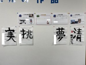 来月の目標の下に貼らせていただきました。この字を見て、来年どう行動していくのか考えていただきたいです。