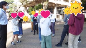 今回は外に出て近くを周りながら建物の由来や名称等を皆さんに立ちながらメモを取る訓練が主になっております。就労現場や実習などに行くときは立ってメモを取ることが主になると思われます。実際に就労や実習に行く際もスムーズにメモが取れるように今の内に訓練することが重要です。