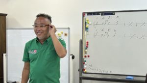 本日は、前回に引き続きウォーミングアップやハンドクラップの鳴らし方等ご説明をさせて頂き、毎回皆さんが楽しみにしているおススメ曲を当てるテンポ当てクイズ等も行い、こちらを絡めたフレーズの発音にチャレンジ頂きました!