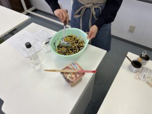 先生に調理頂きました “ひじきと豆の簡単サラダ” 、とてもシンプルで、身体に優しく食材を活かした旨味、甘味が感じられます。