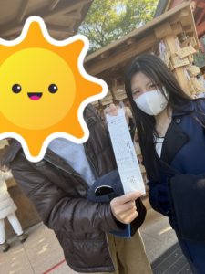 目出度く おみくじにて大吉を引き当てた利用者さんも折り。。。新井所長とのご満悦なツーショットです!