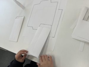 A3用紙にプリントアウトした原本を切り抜き、糊付けしながら封筒に仕上げていきます。
