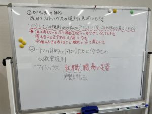 さて昨日のカリキュラムですが、「ライトハウスの規則」について行いました。