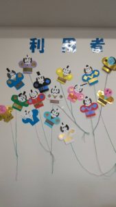 型どおりに画用紙を切り貼り付ける作業を皆さん黙々と行っていました。