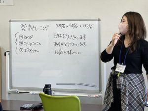 金曜日の午前中は午後のポスティングに備えて「挨拶」の訓練を行いました。