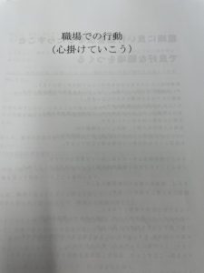 今日は「職場での行動」についてカリキュラムを行っています。