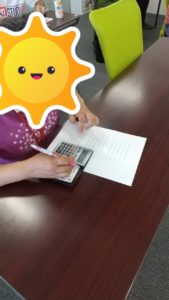 レシートを使って項目ごとに貼り出し、計算機で計算していくカリキュラムです。
