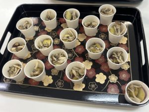 先生に調理頂きました“さつまいもとキノコのゴマ和え”、とてもシンプルで、身体に優しく食材の味と香りが感じられます。
